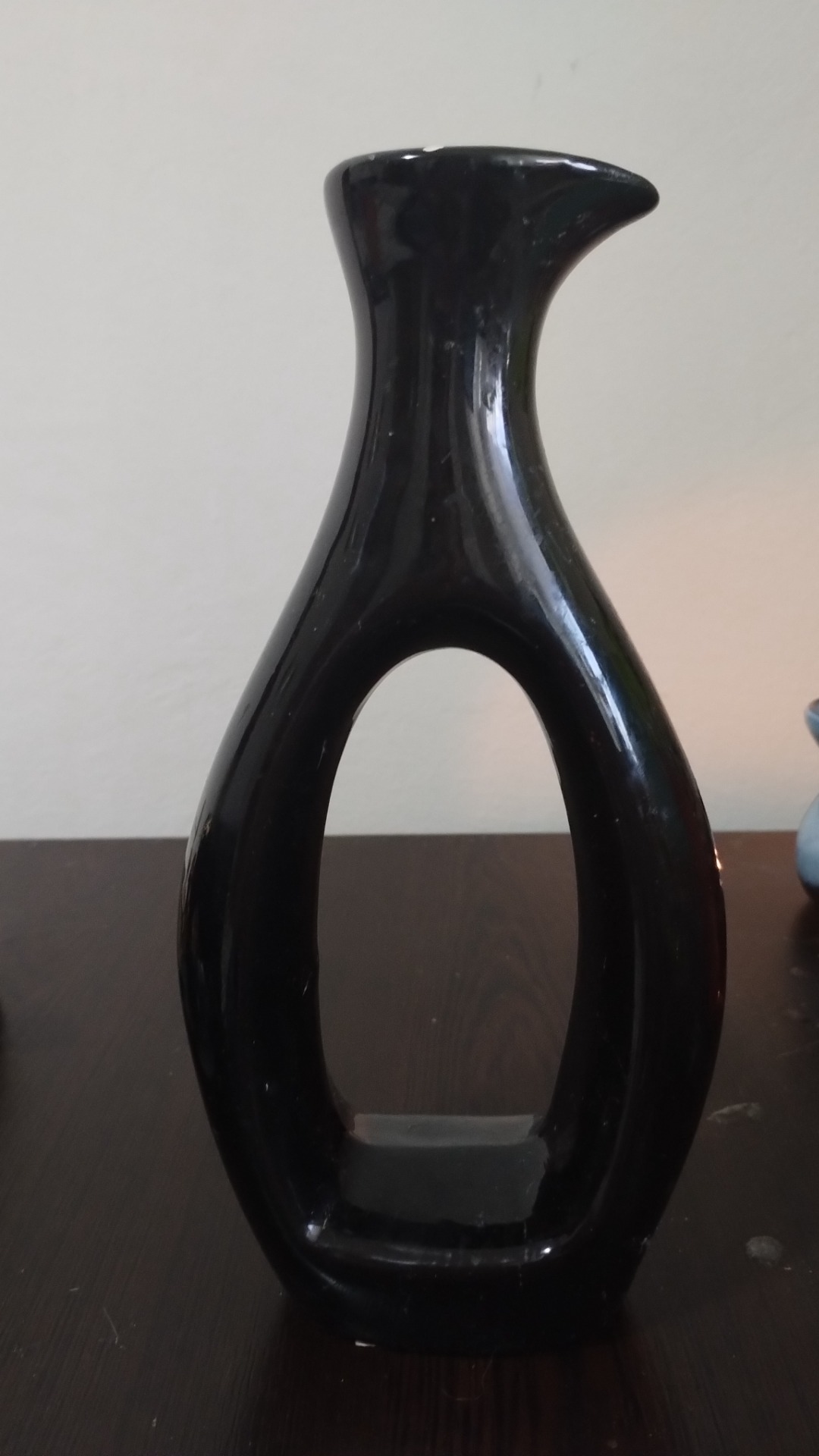 Vază neagră modernă de ceramică pentru living. Decorativă.